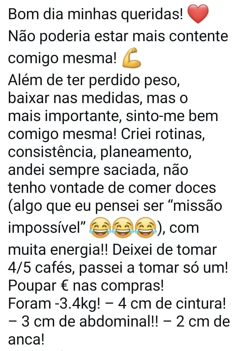Além disso, eu própria testei e vivi esta metodologia. Sei exatamente o impacto que pode ter na tua vida, porque já vi – e acompanhei de perto – resultados reais e transformadores na saúde, mentalidade e autoestima de tantas mulheres.